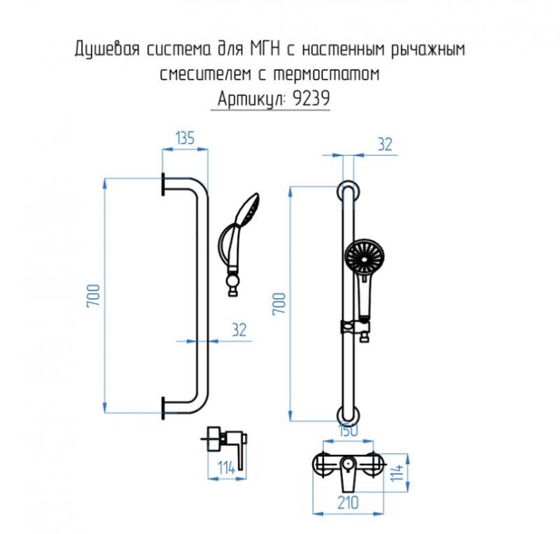 Душевая система для МГН с настенный рычажным смесителем с термостатом 9239 по низкой цене в наличии в интернет-магазине сантехники «Водолей» в Муслюмово. Мы предлагаем самую низкую цену на душевые стойки с верхним душем производителя . Приобрести Душевая система для МГН с настенный рычажным смесителем с термостатом 9239 выгодно Вы можете on-line на нашем сайте, или отправив заявку по почте, а также по телефону 8 (927) 672-07-77 или в магазине.