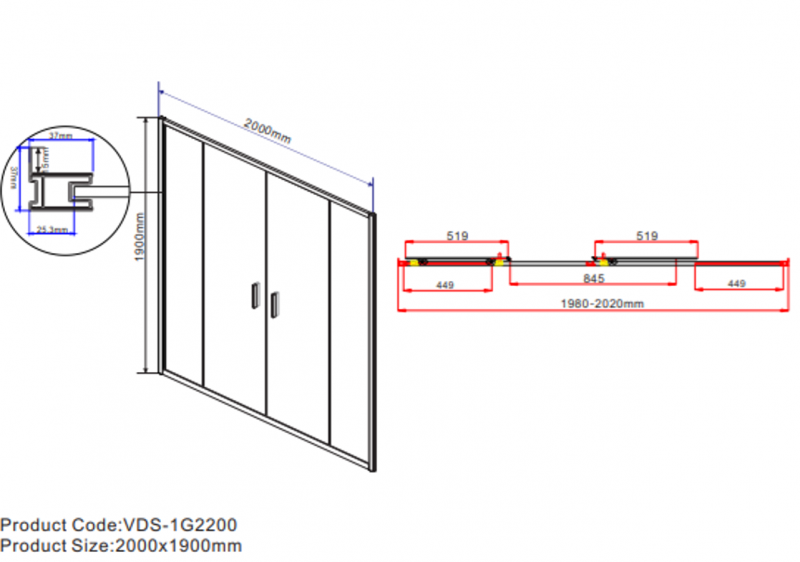 Душевая дверь Garda 1G2200CL, 2000, хром, прозрачн Vincea VDS-1G2200CL (299140) Vincea