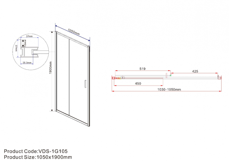 Душевая дверь Garda 1G105CL, 1050, VDS-1G105CL, хром, прозрачн Vincea (299110) Vincea