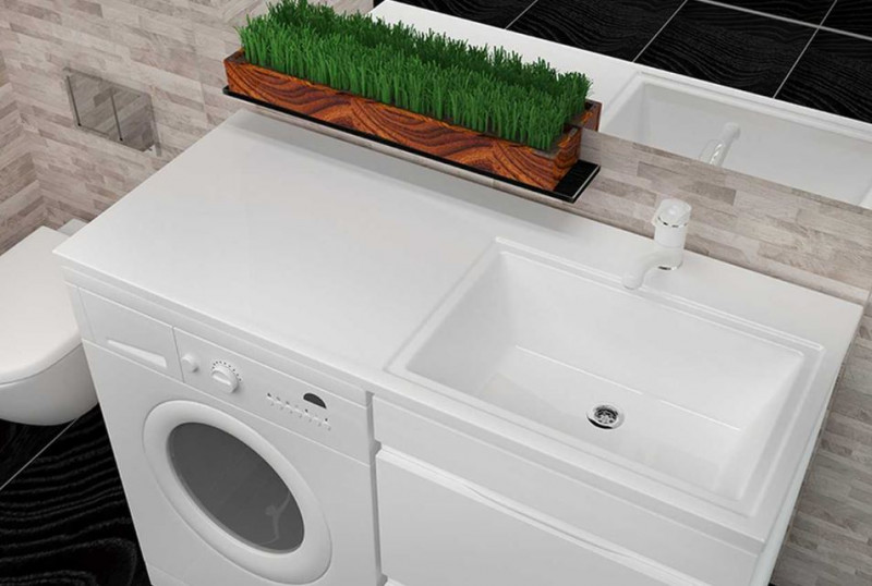 Раковина над стиральной машиной даёт возможность предельно эффективно организовать пространство ванных комнат. Конструктивная особенность раковины над стиральной машиной заключается в размещении сливного отверстия и сифона в задней части чаши. Минималистичный дизайн раковины позволит украсить интерьер ванной комнаты. Раковина эргономична и инновационна, устойчива к разрушительному воздействию. Полированная поверхность раковины обеспечивает лёгкость чистки, а отсутсвие микропор - высокие антибактериальные характеристики.