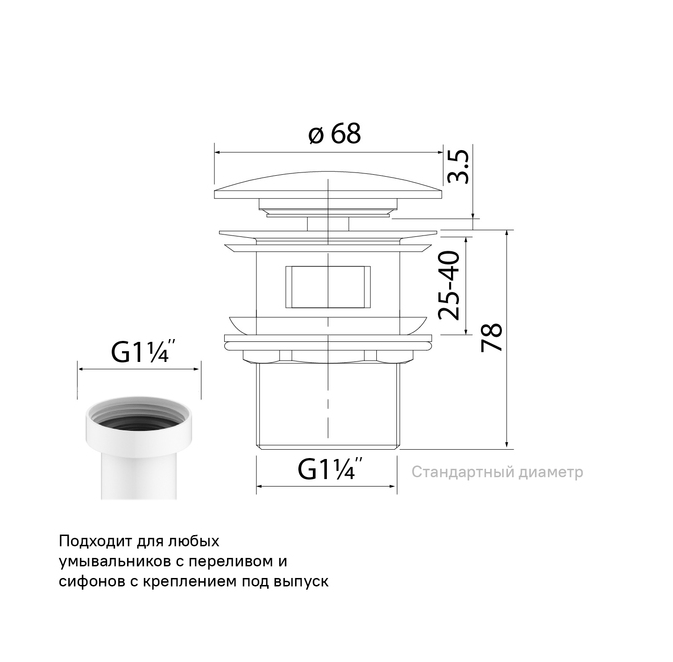 Выпуск для умывальника с переливом, матовое золото, Slide, IDDIS, SLIMG1Wi88 IDDIS
