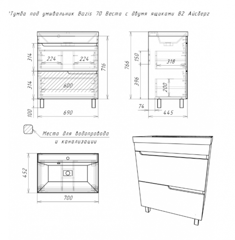 Тумба под ум. "Bazis 70" Веста с двумя ящ. В2 Айсберг DV5907T по низкой цене в наличии в интернет-магазине сантехники «Водолей» в Муслюмово. Мы предлагаем самую низкую цену на тумба под раковину производителя Домино. Приобрести Тумба под ум. "Bazis 70" Веста с двумя ящ. В2 Айсберг DV5907T выгодно Вы можете on-line на нашем сайте, или отправив заявку по почте, а также по телефону 8 (927) 672-07-77 или в магазине.