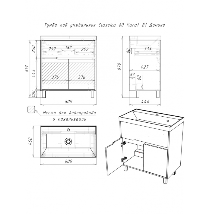 Тумба под ум. "Classica 80" Karat Серый тауп В1 Домино DK3213T Домино
