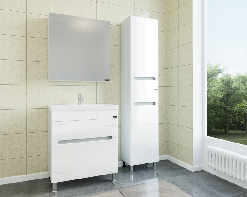 Мебель для ванной комнаты СанТа коллекции Лондон выполнена в современном стиле High-Tech.