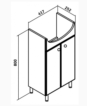 Тумба под раковину Runo Уют 45 напольная с двумя распашными фасадами и одной внутренней полкой. Петли со встроенным доводчиком, ручки - 2 шт, ножки хром - 2 шт, ножки пластик - 2 шт.