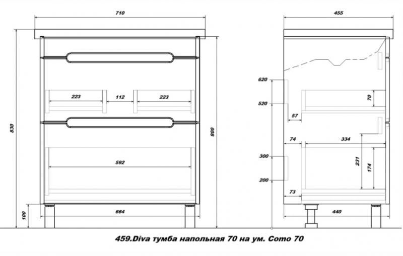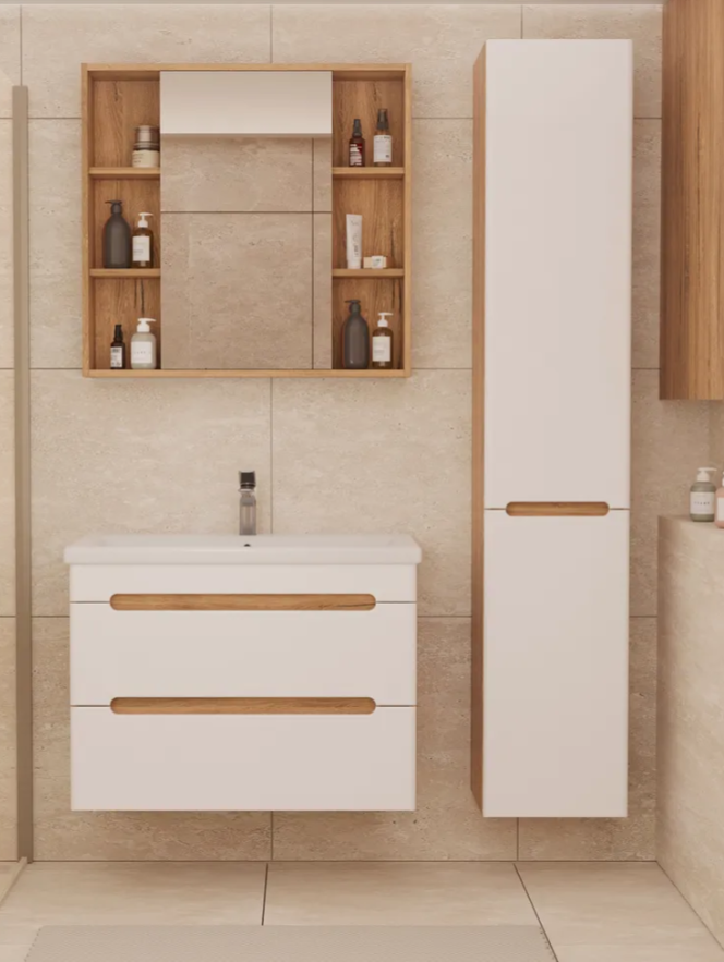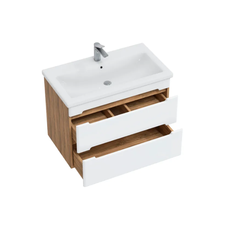Тумба Diva 70 напольная Белая/Вотан, с умывальником Como 70 Sanstar