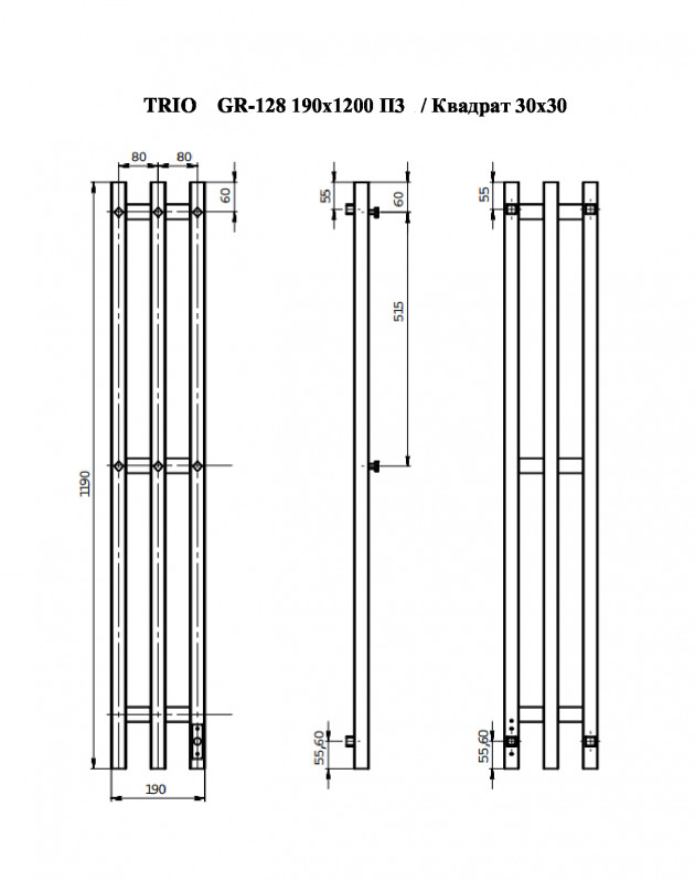 Полотенцесушитель электр. TRIO GR-128 190х1200 П3 black mat R GROIS