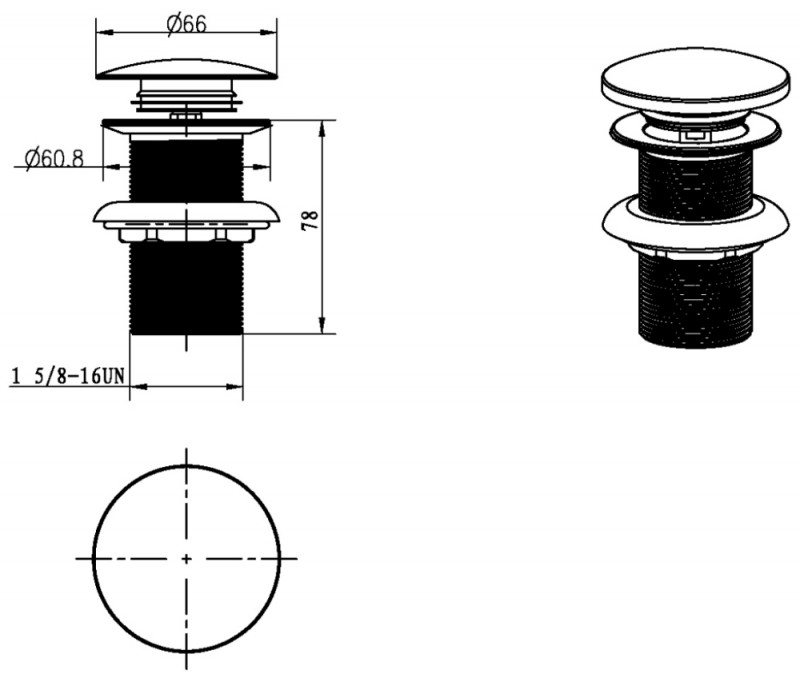 Система клик-клак, управляется нажатием на пробку слива