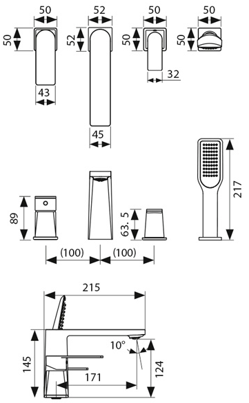 Смеситель для ванны на борт, на 4 отверстий, KAISER Terso 70122 KAISER