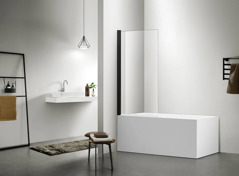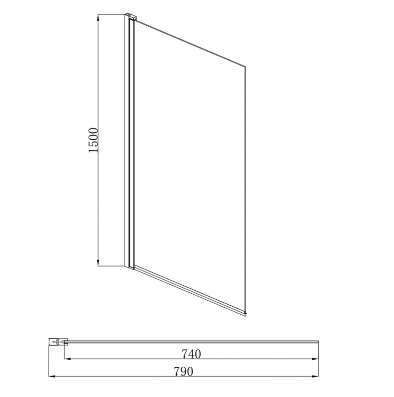 Шторка на ванну, AQ DEL SBA 08015BL одноэлементная, поворотная 800X1500 проф черн, стекло прозр Aquatek